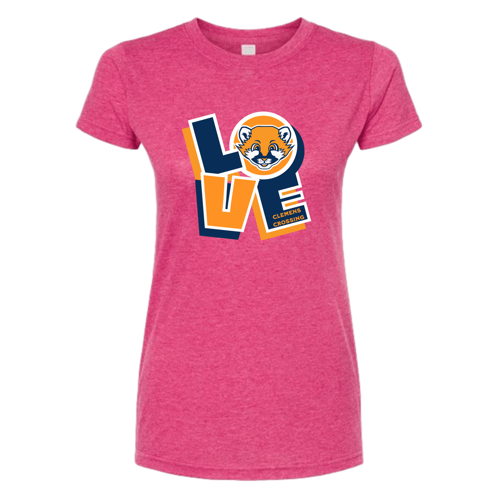 Show your school spirit in style with the CCES Cougar LOVE Women’s Shirt! Designed with comfort and pride in mind, this tee features a bold “LOVE” graphic with the Cougar proudly at its center — the perfect way to represent CCES everywhere.